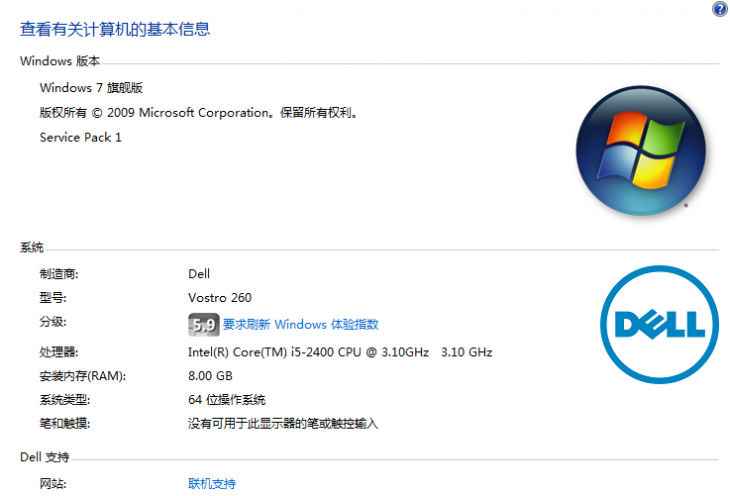 1、Dell Vostro 260 臺式機,WIN7 旗艦版