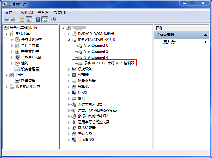 11、啟動后,查查設備管理器中的 IDE ATA/ATAPI 控制器組內已有 AHCI 字樣,確認成功